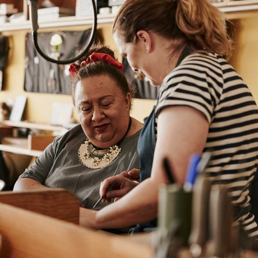 Lucinda Barrett is an artist and maker. In the 1990s she was part of a Tāmaki based creative partnership, Victorious Gargantuans. During this time she worked mainly in resin and gold leaf, selling jewellery at fashion institutions Zambesi and WORLD. She pivoted to interior painting as a specialist finisher and colour consultant for some years before returning to her jewellery roots to study at Hungry Creek Art School. After graduating with a diploma in jewellery design she reestablished herself as a fashion jeweller stocking stores around the country including the wonderful Miss Crabb. In 2020 Lucinda began teaching at Workshop6.